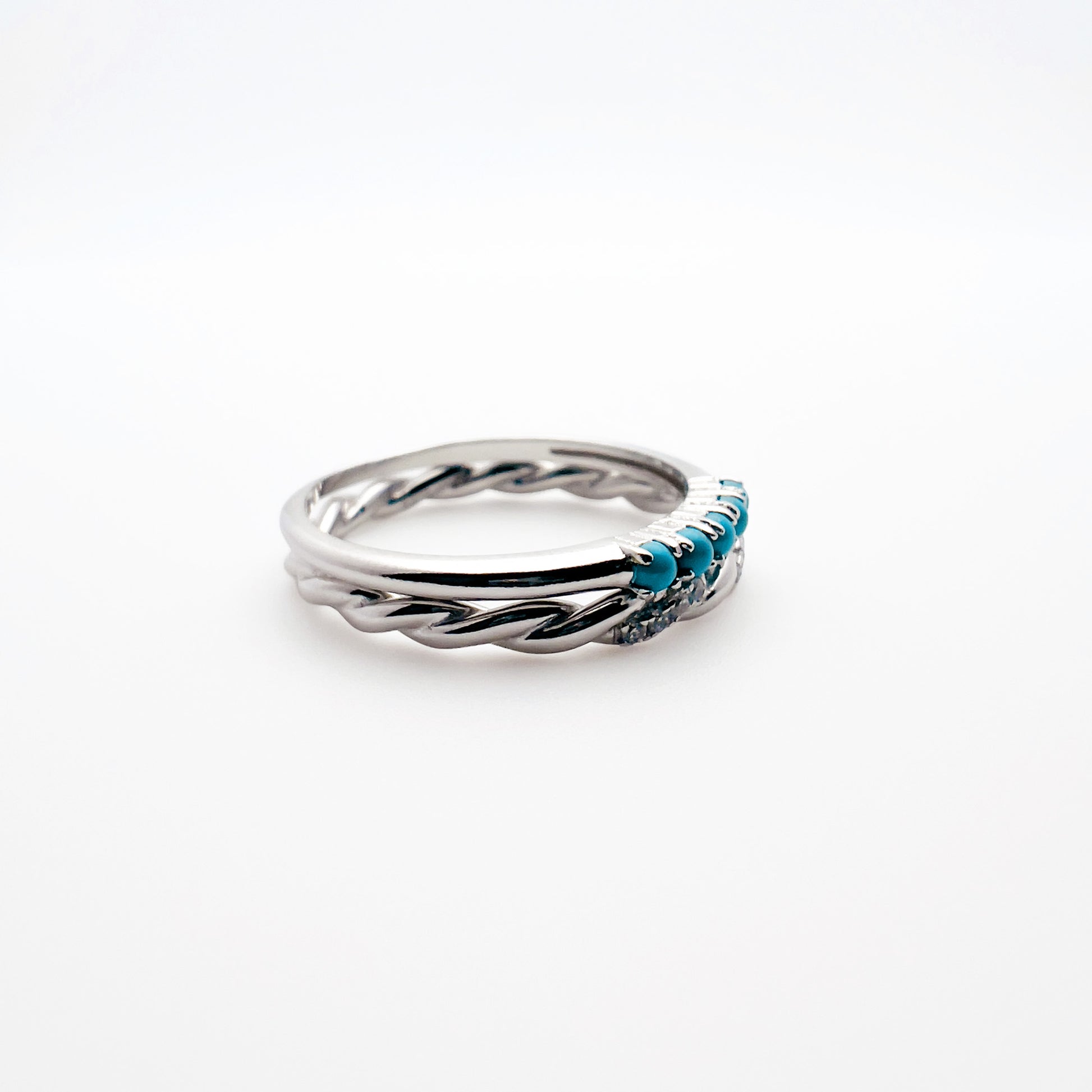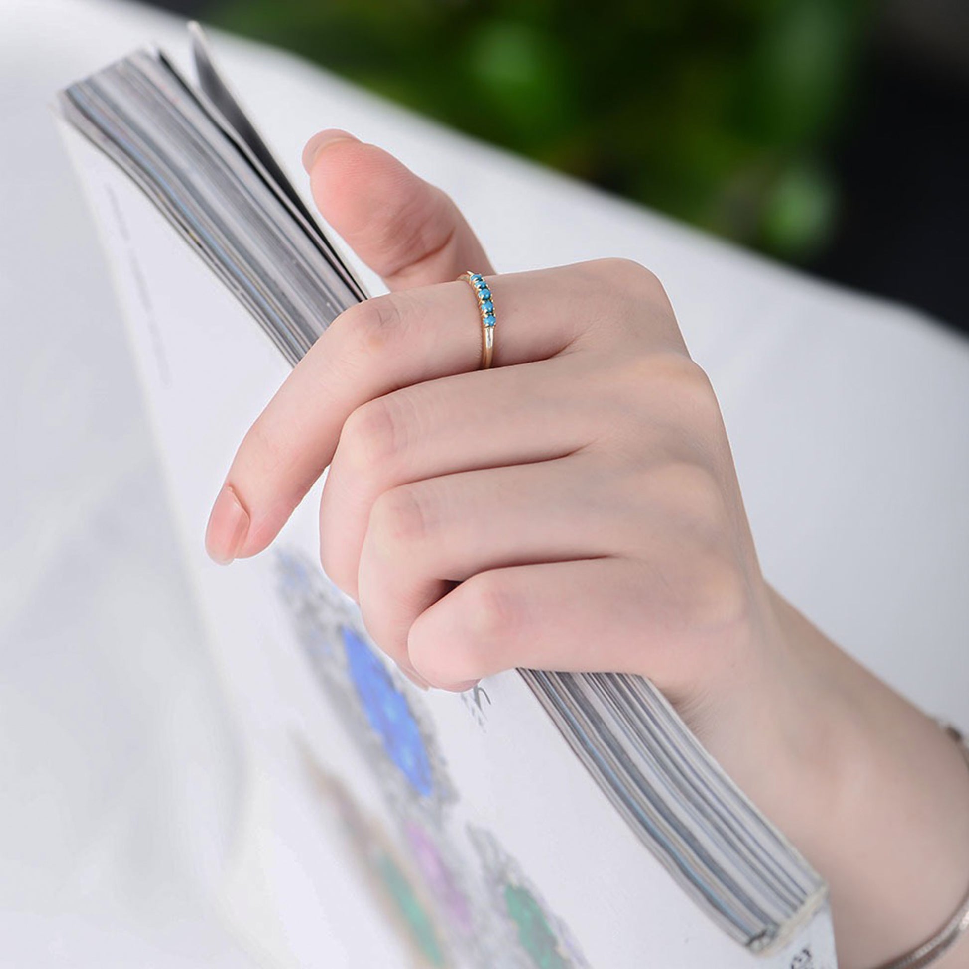 The Azure Line Ring features five vibrant turquoise stones set in polished 925 sterling silver. Its clean, minimalist design makes it perfect for stacking or wearing solo — a subtle accent of calm color for everyday elegance.