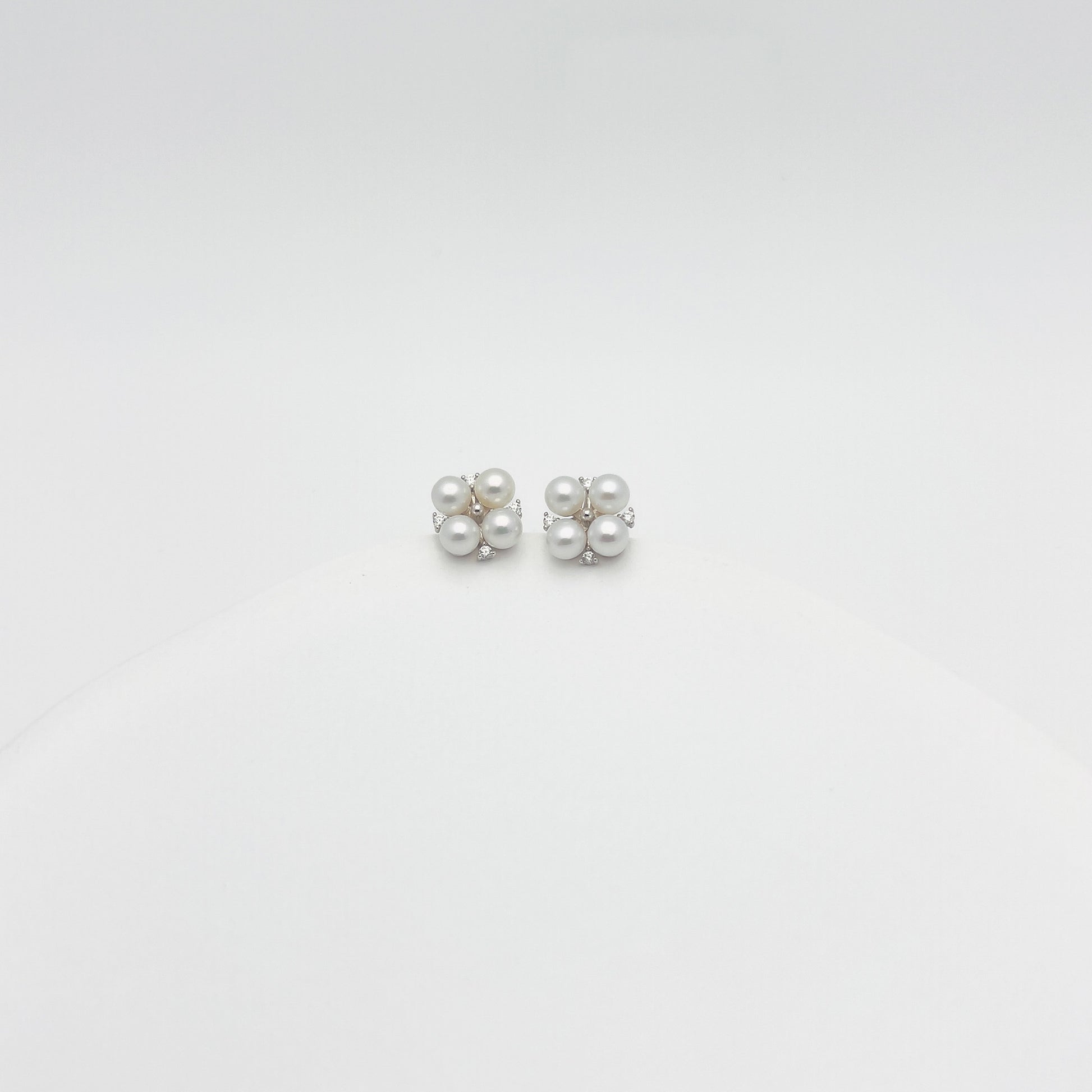 Delicate and luminous, these Clover Pearl Cluster Studs bring together four perfectly round freshwater pearls accented with petite cubic zirconia. Set on 925 sterling silver, they create a soft, elegant sparkle—perfect for everyday sophistication or special occasions.