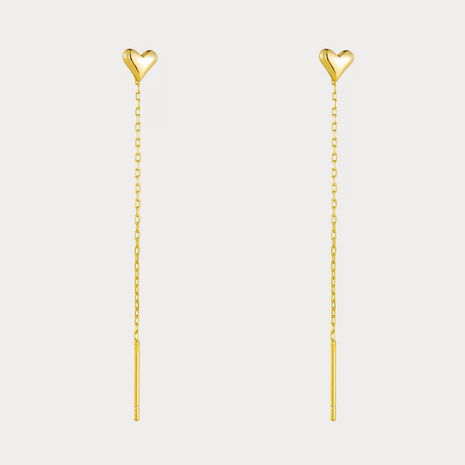 Light, fluid, and effortlessly feminine — the Heart Glow Threader Earrings feature a polished heart stud connected to a fine 14K gold-plated chain that glides softly as you move.